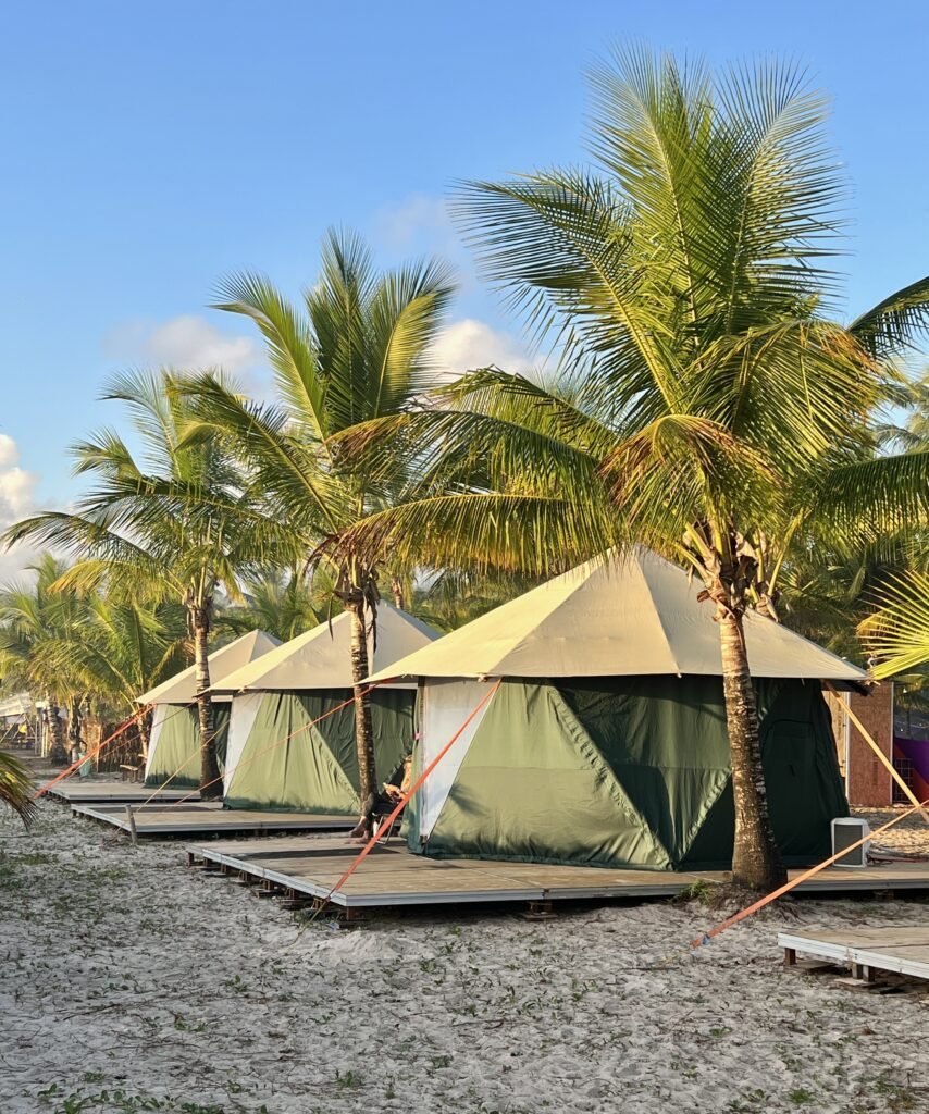 Somente no pacote Cabana 2P e Família 4P. Para os demais pacotes, os hóspedes podem levar ventiladores à bateria ou pilha. Não será permitido ventilador elétrico e não haverá tomada nas barracas.